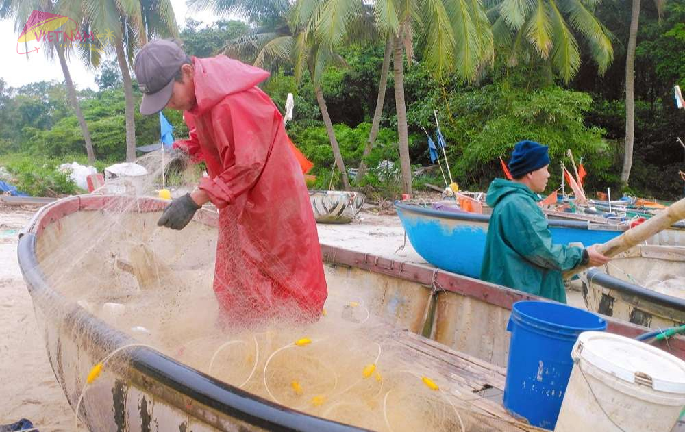 Nam O Reef is a tourist place near the ancient fishing village, so there are also many unique and interesting experiences here. First and foremost, seagoing fishing operations with basket boats of fishermen.
