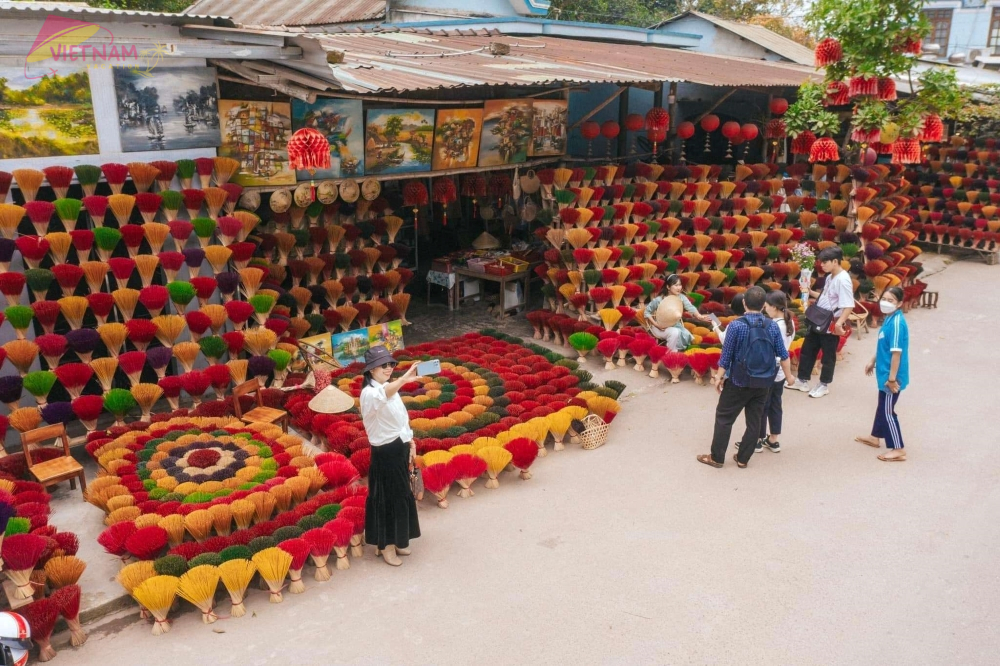 Summer is when the incense flowers bloom. In the bright light of the sun and beautiful blue sky, villagers will dry the finished bunches of colorful incense along the streets and roads. Then, a picturesque scene appears in your eyes while you take plenty of fascinating pictures, and that unforgettable scenery will be kept in each of the tourist’s minds after they leave this place.